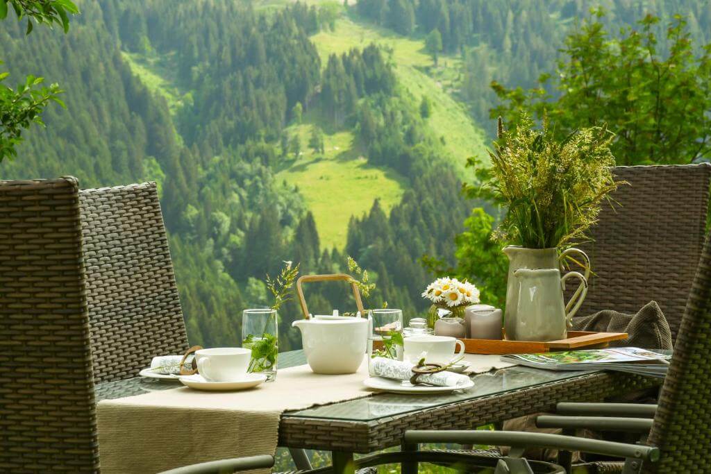 Nach einem erlebnisreichen Tag könnt ihr die Ruhe genießen – auf dem Balkon eurer Wohnung mit Blick auf die Berge oder im gemütlichen Garten.