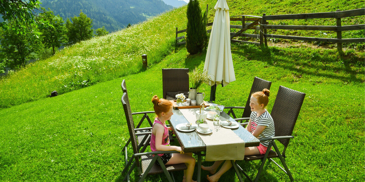 Nach einem erlebnisreichen Tag könnt ihr die Ruhe genießen – auf dem Balkon eurer Wohnung mit Blick auf die Berge oder im gemütlichen Garten.